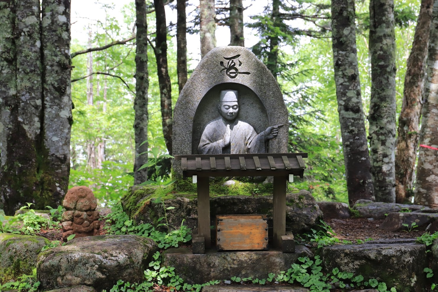 新穗高纜車之西穗高口站,登山口有播隆上人紀念碑。