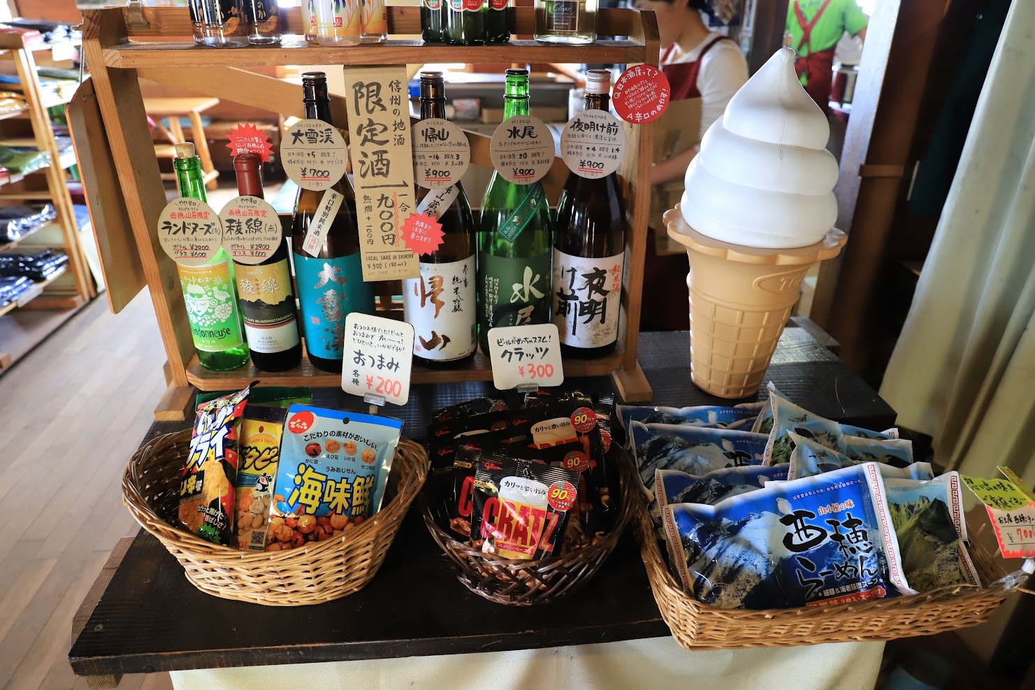 平湯溫泉區僅有這一家商店開到晚上8點,裡面販賣許多商品,連當地的特產都有。