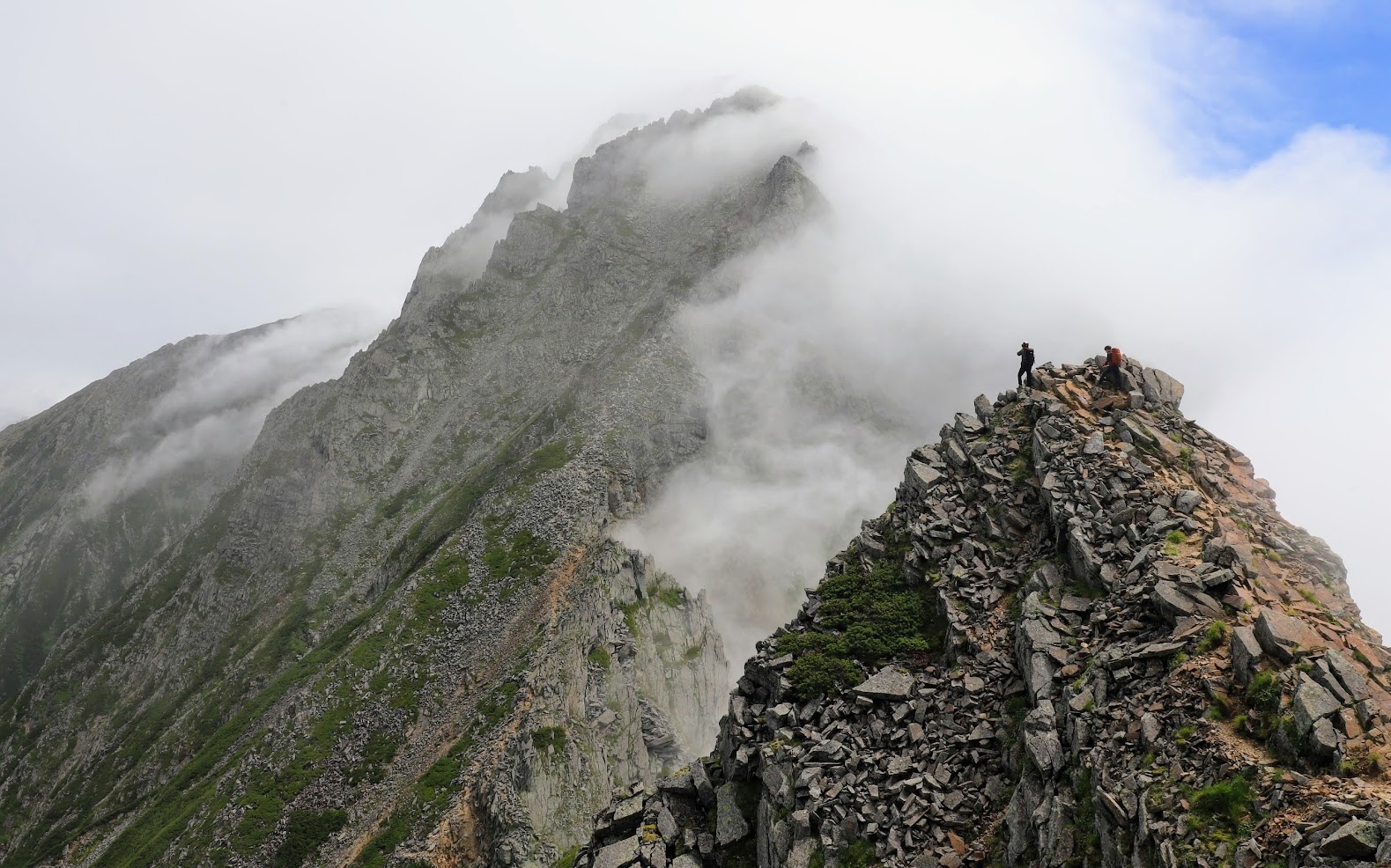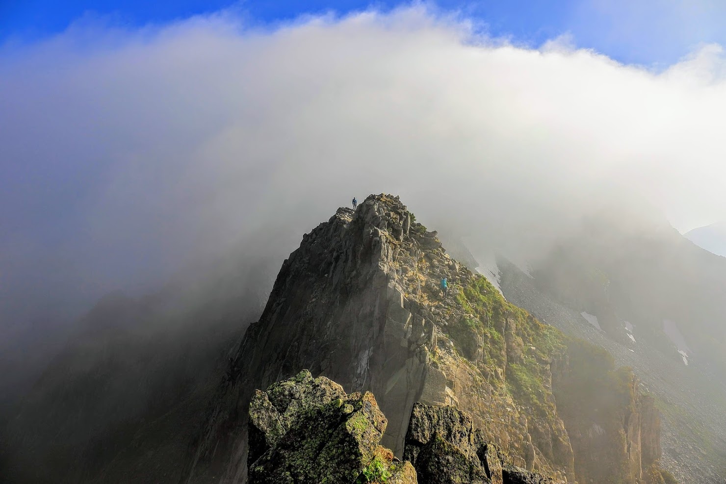 第一次來到ジャンダルム(憲兵岩)是在雲霧中前進,突然間前方出現一座200公尺落差的大岩峰,這是ジャンダルム(憲兵岩)啊!
