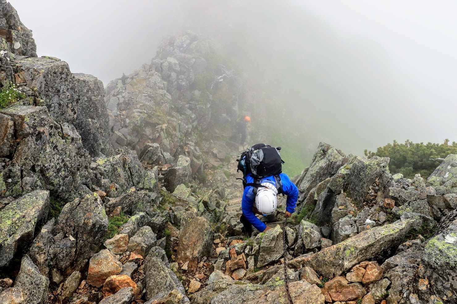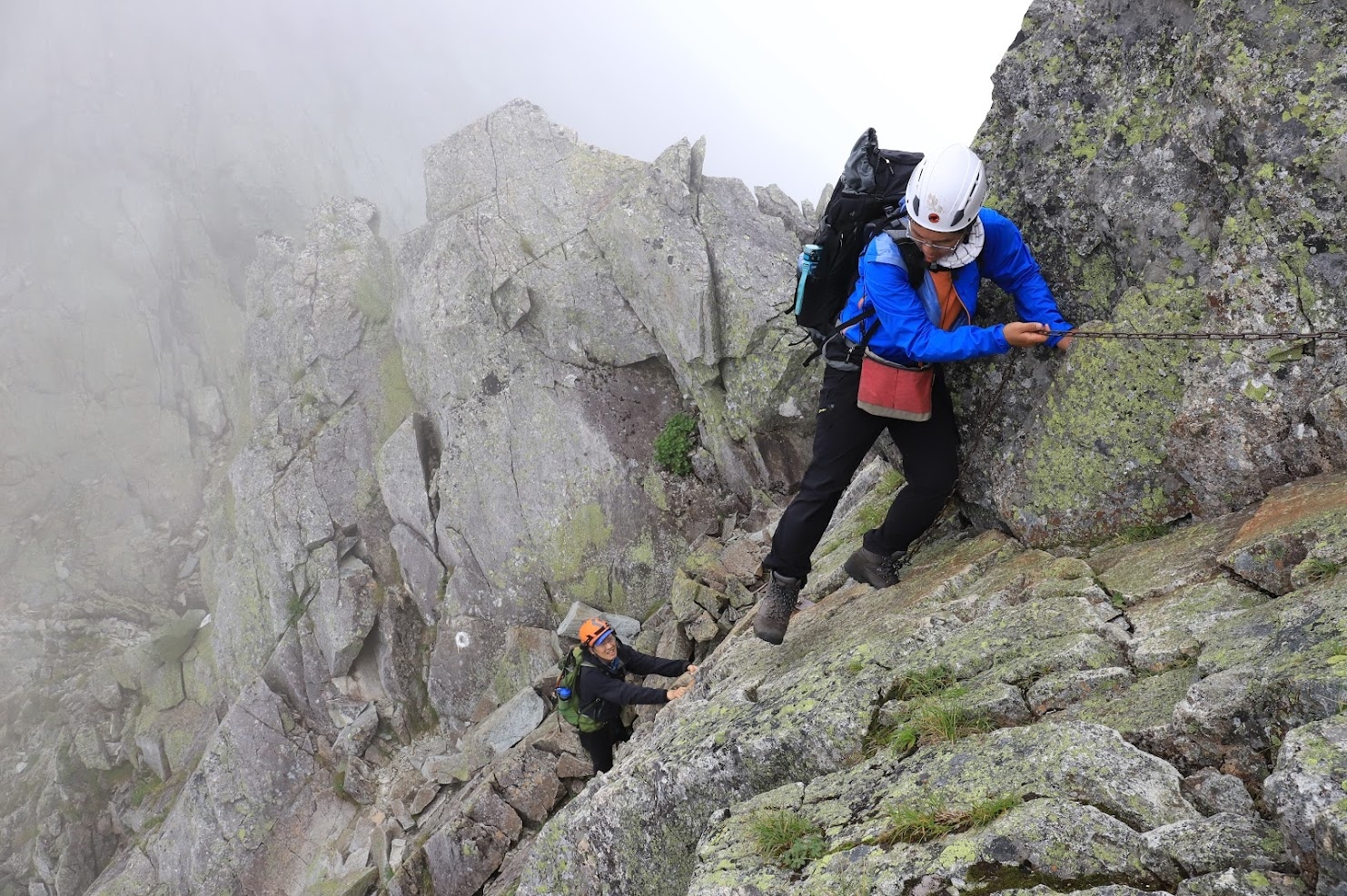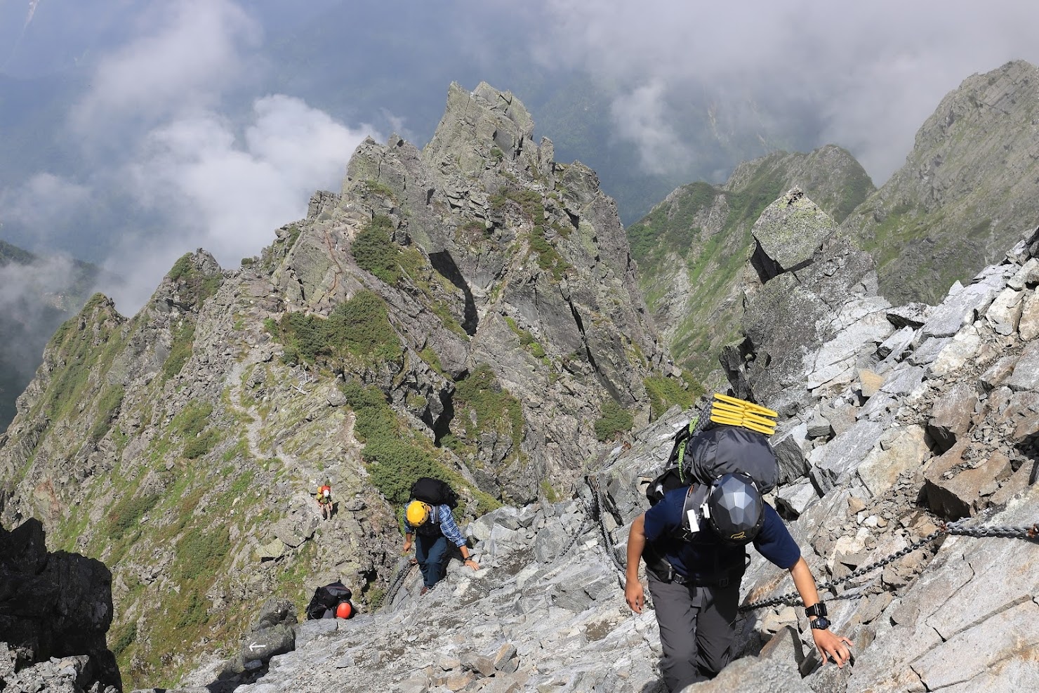 過了西穂高岳後,就是穗高連峰最精彩路段,其驚險程度類似將台灣的素密達斷崖、品田斷崖、烏拉孟斷崖、鬼門關斷崖、卡羅樓斷崖等危崖組合而成,但是安全措施較少,極度考驗攀登者的攀爬技巧,還有臨場反應。