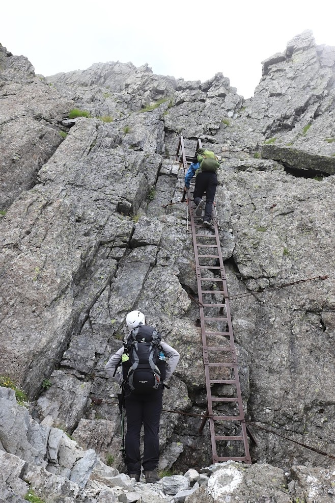 續前行,先下切一道鐵梯,日本的登山設施如此完善,在熱門登山路線,若有陡峭地形,必定會設置鐵梯,或是鐵練、鐵環,以確保登山安全。