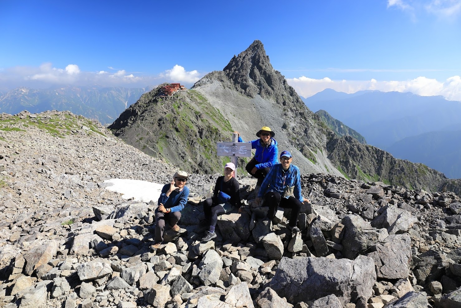 我們在槍岳頂上,環顧群山,那險峻的西穗-奧穗高岳,想要下次縱走的槍岳、表銀座、燕岳縱走(東鎌尾根),還有較遠處的笠岳、常念岳,皆是想登臨之山岳。