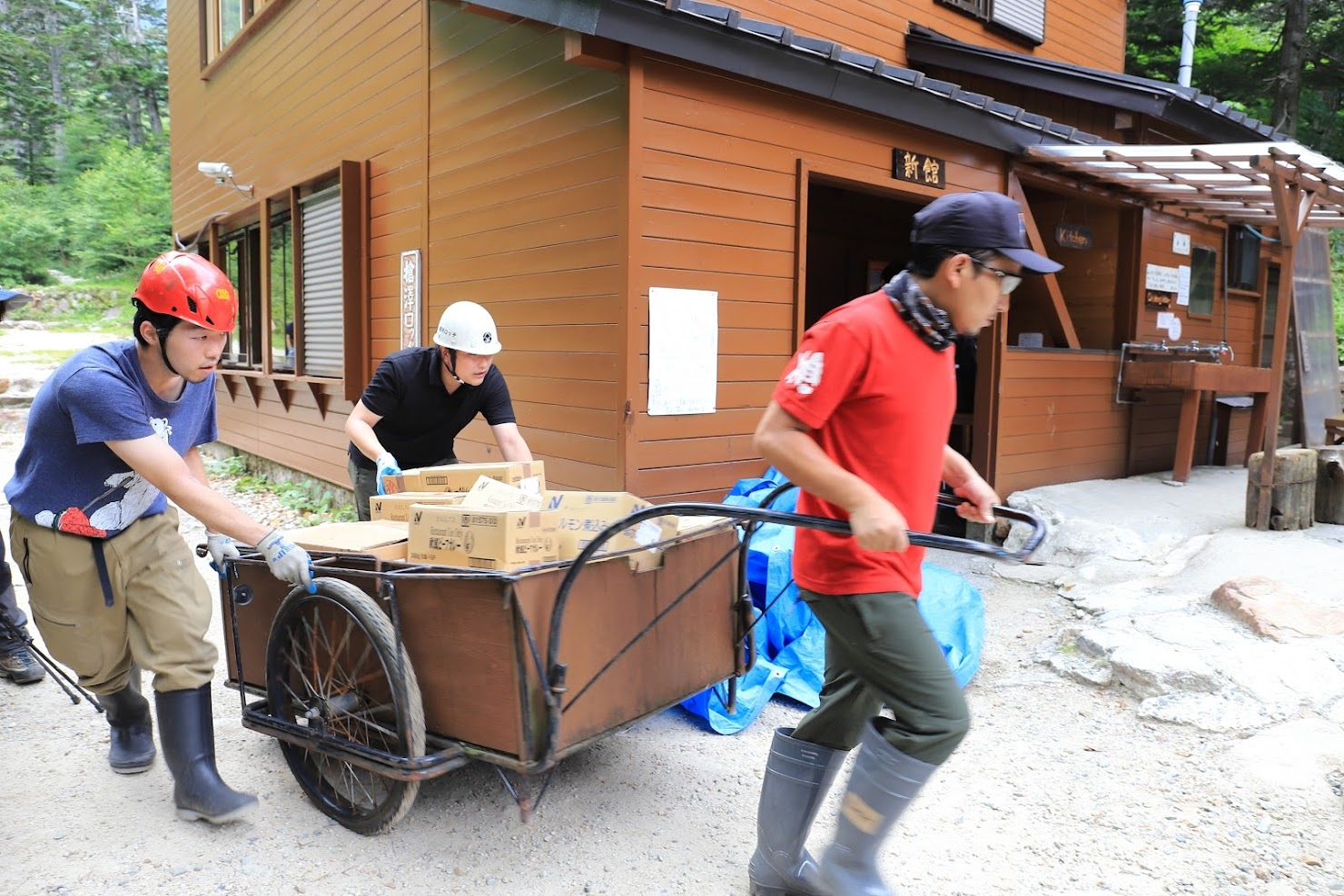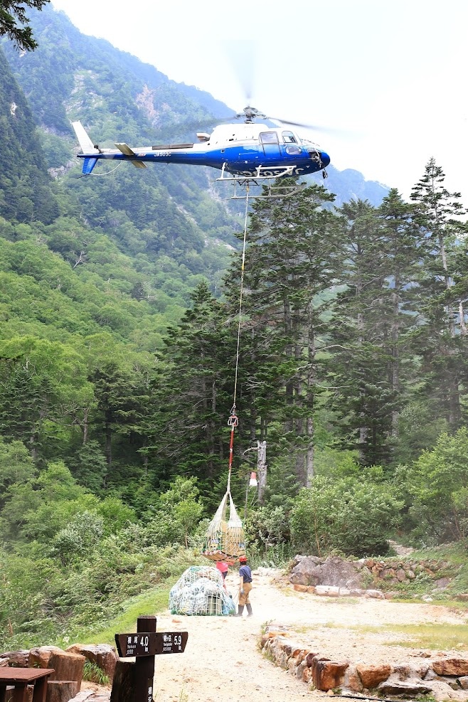 突然間,工作人員大聲呼叫大家進入小屋之內,原來有直升機執行運送物資任務,讓我們了解日本的山屋運作模式。